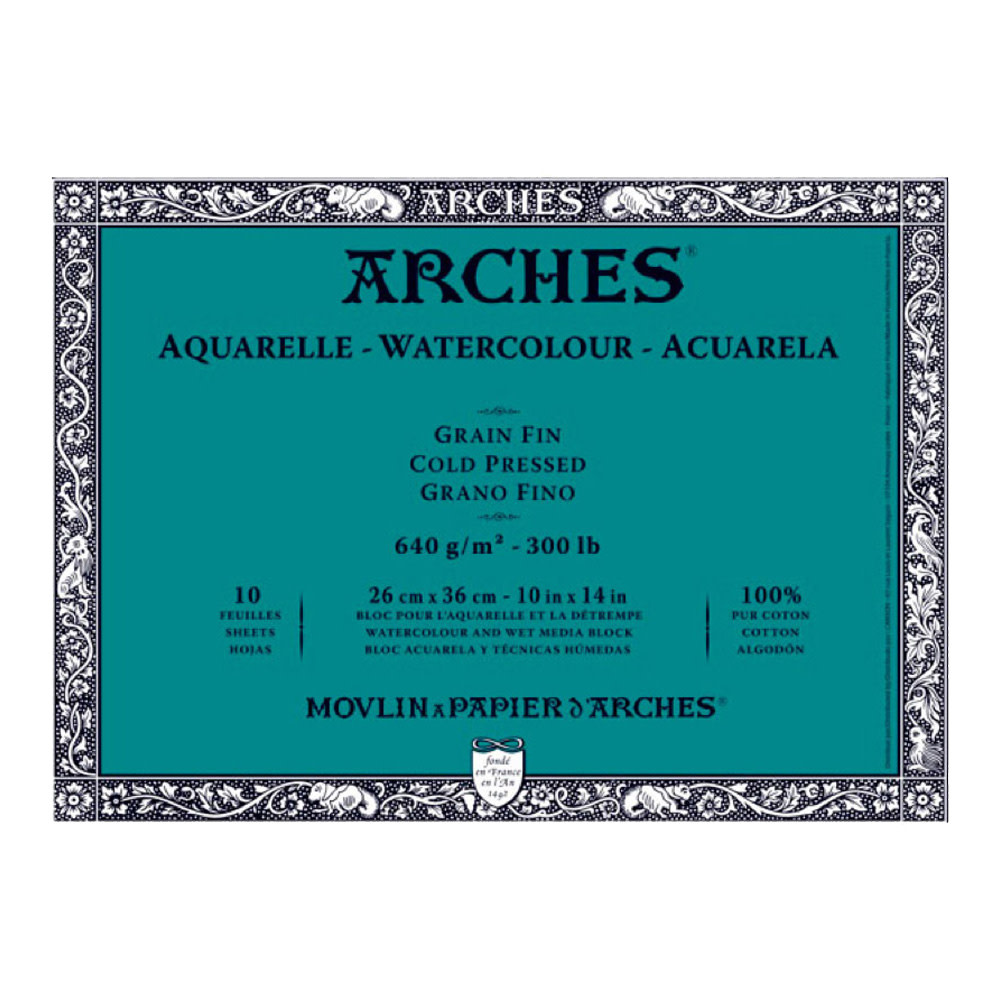 Arches Watercolor Blocks contain natural white, mouldmade watercolor paper that is cut and glued in convenient blocks. Blocks help to hold the paper in place when wet, reducing warping and eliminating the need for taping.