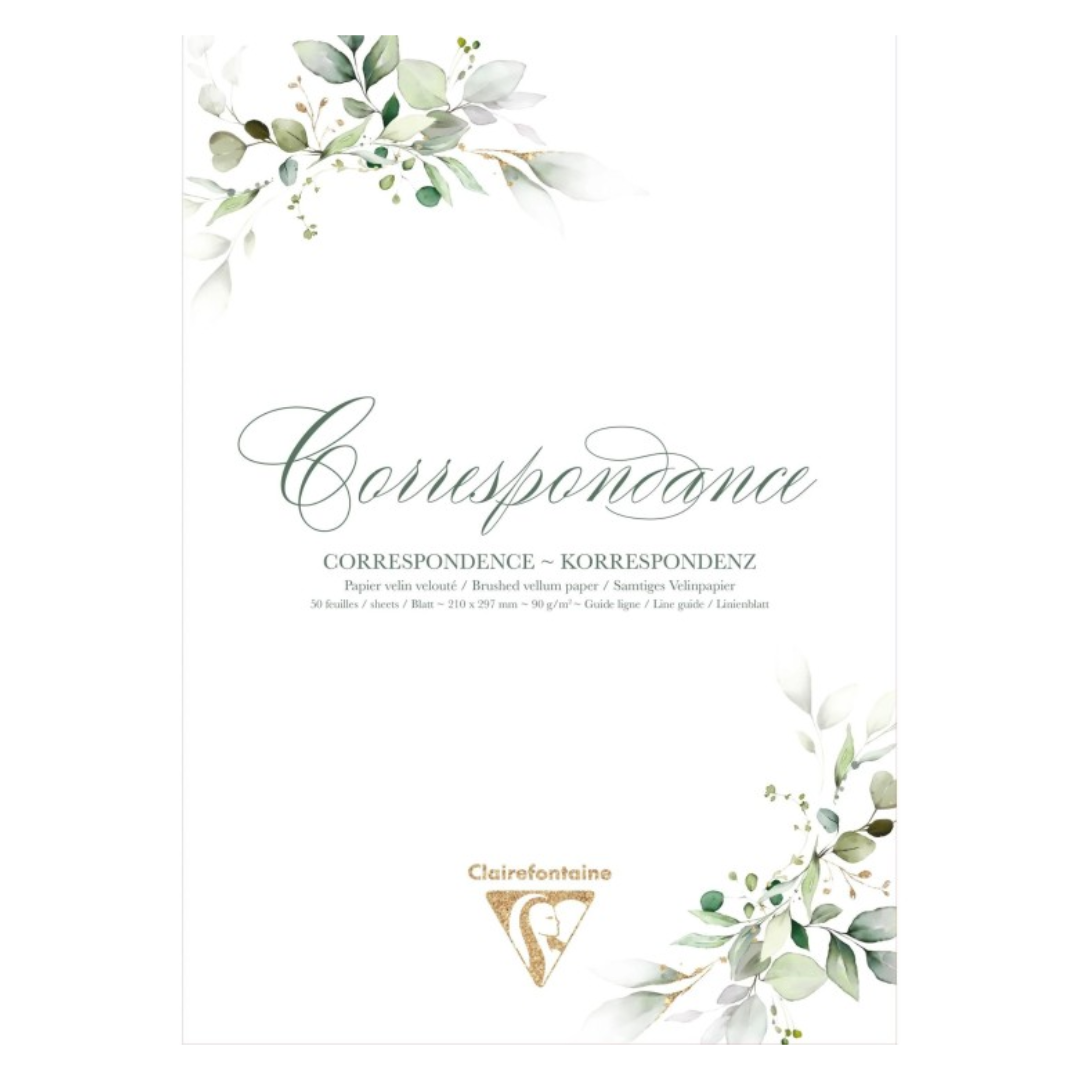 Clairefontaine correspondence paper, brushed vellum - 21x29.7cm, 90g, 50 sheets - eucalyptus green