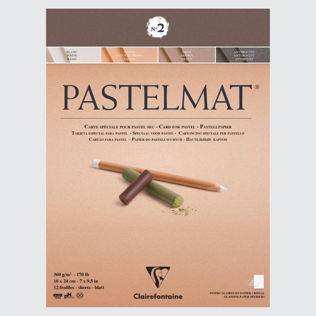 A new concept for the Pastel market! The pastel adheres so well to this new paper that you don't need to use a fixative between each layer. You are able to multiply the layers without a saturation effect. Pastelmat brings new opportunities for pastel artists, offering a coarser surface than velour but a softer surface than sand paper. Available in 8 colours: warm, cool or achromatic colours for every kind of subject with dry pastels. In the pads, each sheet is protected by a crystal paper divider. Rub out or wet the paper, the Pastelmat keeps its original properties.