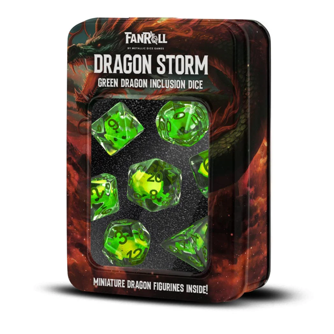 FanRoll Dragon Storm Dice - 7pc Polyhedral Set - Miniature Green Dragon Inclusion C$29.99 In stock (3) Add to cartLogin for wishlistBuy NowFree shipping From C$125.00