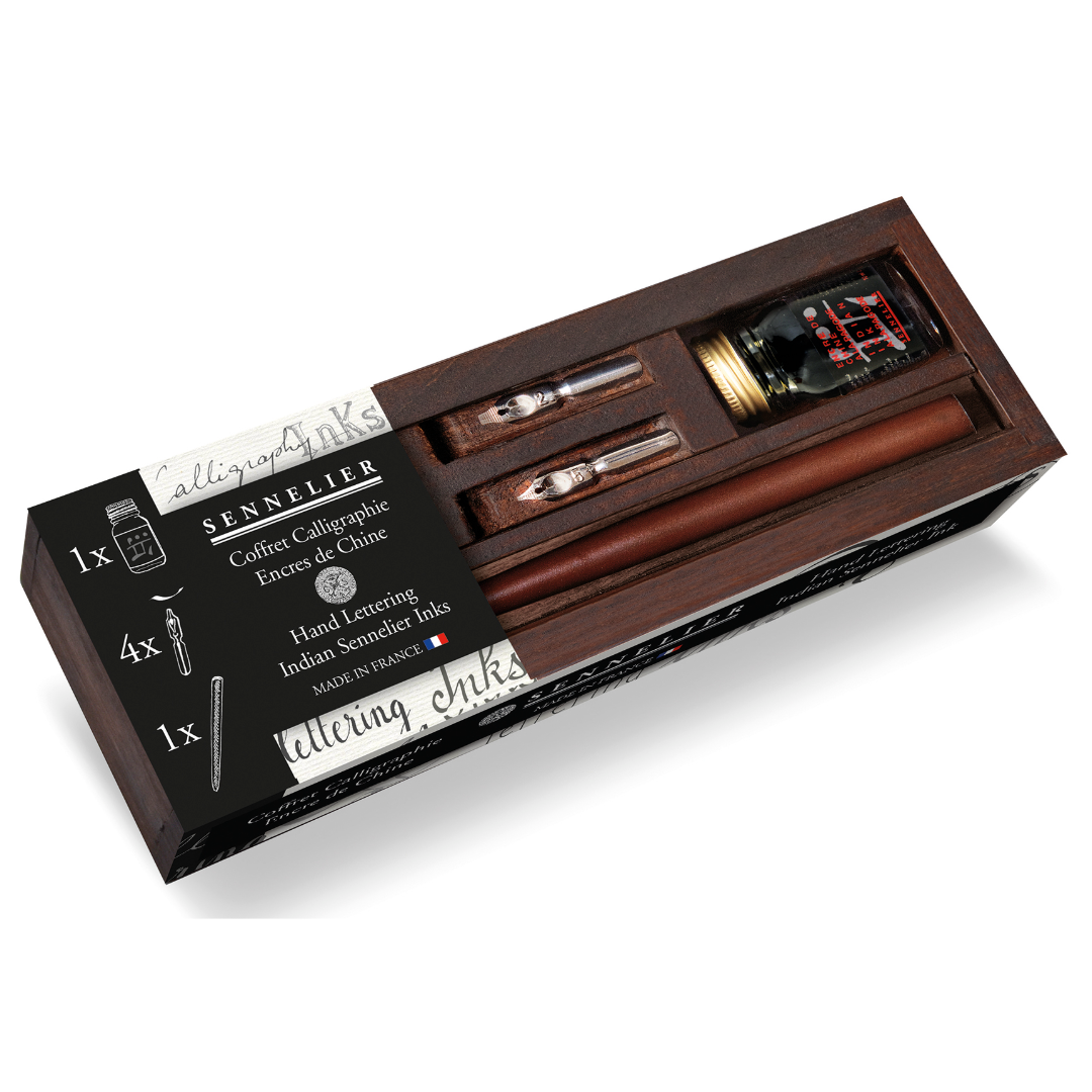 Sennelier indian inks hand lettering set w/ quill & 4 nibs