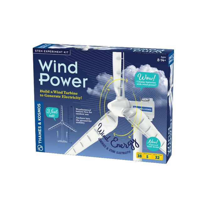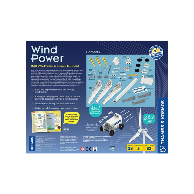 Wind is one of the most promising sources of clean, renewable energy available today. With this kit, you can assemble a realistic wind turbine complete with electric generator and adjustable rotor blades that are designed with complex aerodynamic curves to look and work like modern-day wind turbine blades. Then, conduct experiments to optimize the turbine’s performance by adjusting the angle of the blades and discover how to use the wind turbine to light up an LED and charge a rechargeable battery. Convert the generator into an electric motor and assemble a small electric car to demonstrate a tangible application for the stored electricity.